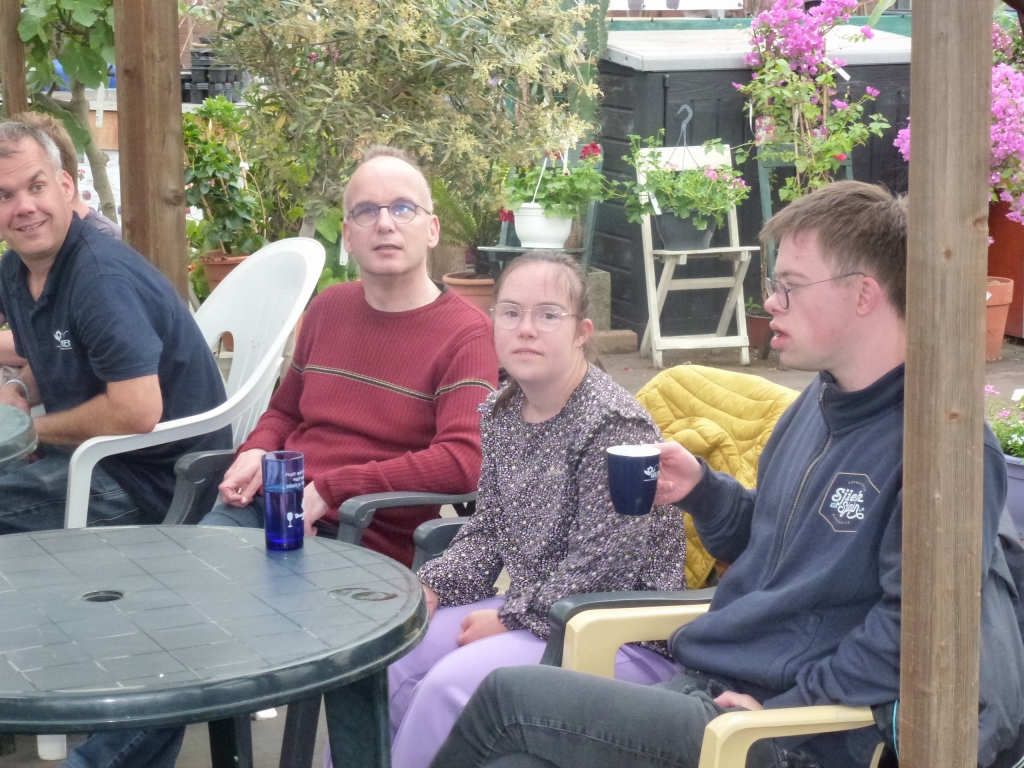 De foto's van de zorgtuinderij geven een goede indruk van de gezelligheid en alle activiteiten.